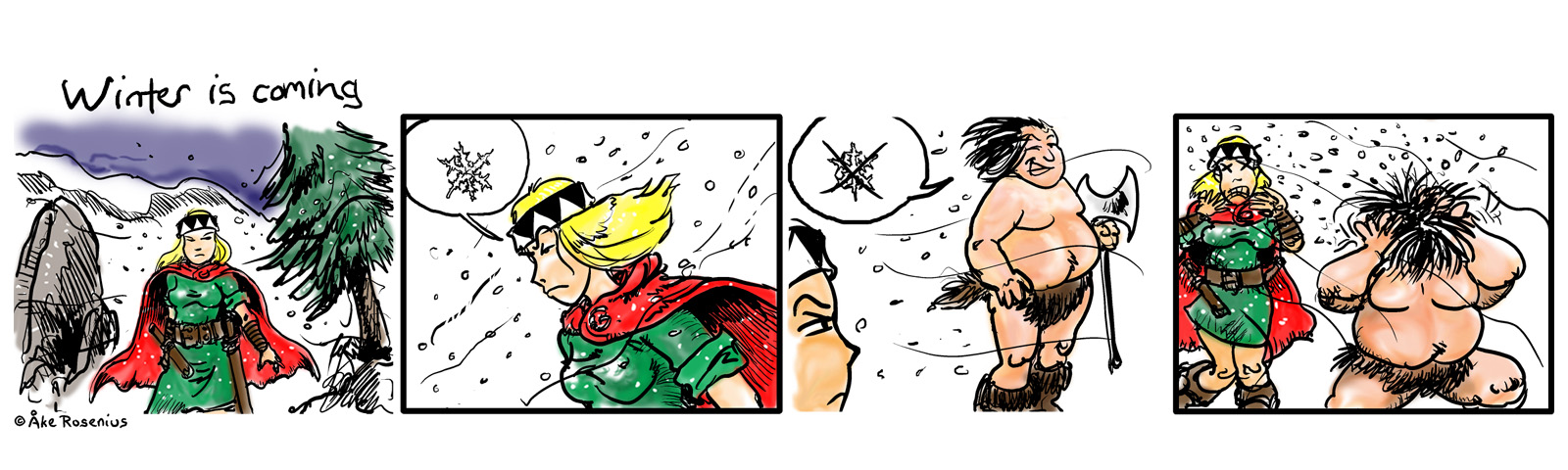 Story & art: Daniel Björk There are several good reasons to stay upwind from that guy. Daniel's produced a number of quirky webcomics over the years, and I think his deliciously Sergio Aragones-y style really suits Bernard. The girl is Heroine from his darkly humorous webcomic Taste of Blood. She was in a bit of a suicidal mode last time I saw her. The Dark and Hairy Annals of Birger Barbaren |