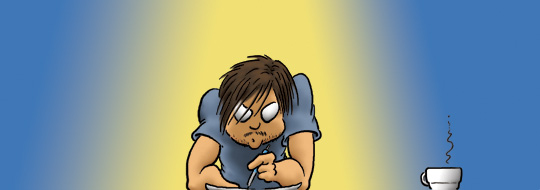 Barbarians in humor comics and cartoons tend to be cast in the same mold. They're big and muscular, stupid, hotheaded and love fighting; the jokes are usually about their tendency to cause carnage at random (but fairly predictable) moments. The idea behind Bernard was to make a barbarian who's the opposite of all that. He is overweight, clever and sneaky, and always tries to get the job done without putting himself in danger. The world where he lives is full of burly Cimmerians and buxom She-Devils – it just has this one fat bastard who won't play by the rules.
